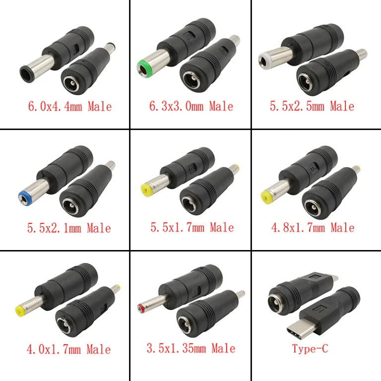 DC Connectors 5.5×2.1mm Female to 5.5×2.5 5.5×1.7 6.0×4.4 6.3×3.0 4.8×1.7 4.0×1.7 3.5×1.35mm Male Laptop Power Plug Adapter