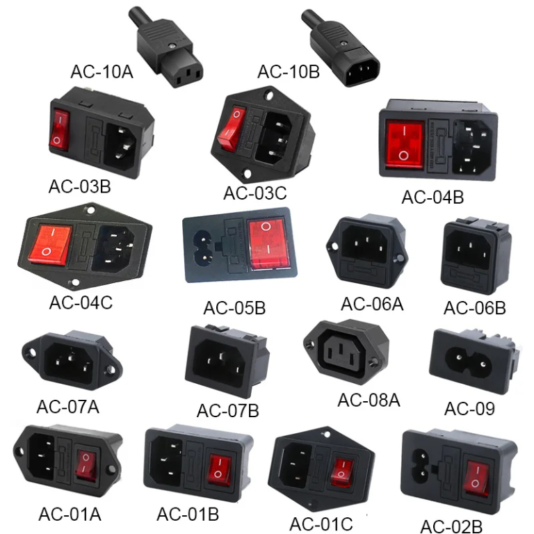 Inlet Plug Pin Connector 3 Pin IEC320 C14 Electrical Socket LED 250V Rocker Switch Brass 10A Fuse Computer Mount Accessories