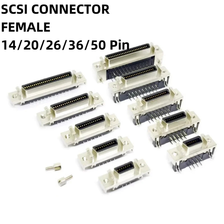 MDR Servo driver SCSI Connector HPCN Slot Type 14/20/26/36/50 pin female plug 180 90 Degree right angle Through Holes pcb