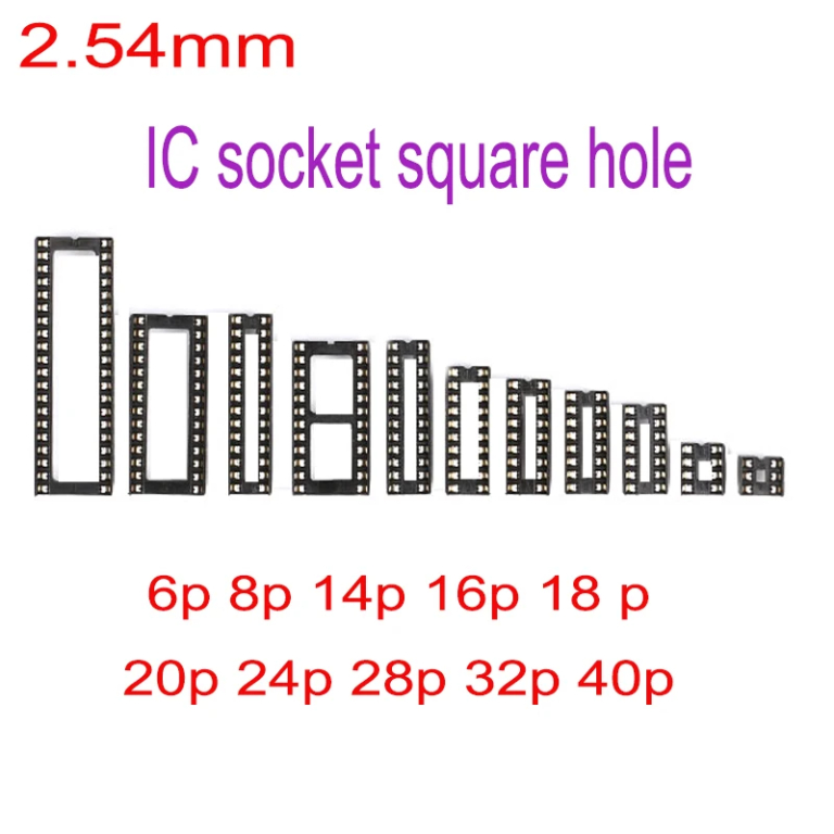 IC Sockets 2.54MM Square hole DIP6 DIP8 DIP14 DIP16 DIP18 DIP20 DIP28 PCSpins Connector DIP Socket 6 8 14 16 18 20 40pin