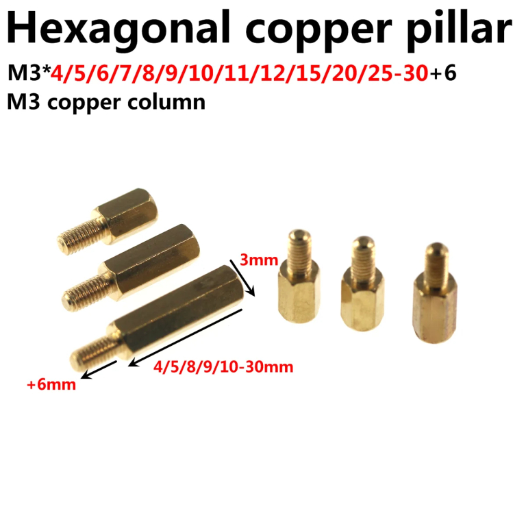 M3 Brass Copper Hex Standoff Hexagon Pillar Column Male-Female External Screw Thread Spacer for PCB Motherboard