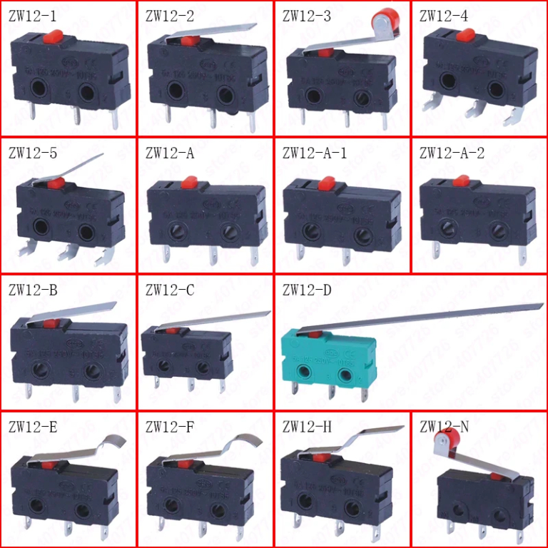 Micro Switch 10mm x 20mm Limit Switch 3 Pin/2 Pin 5A 250VAC ZW12 Series Tact Switch On Off