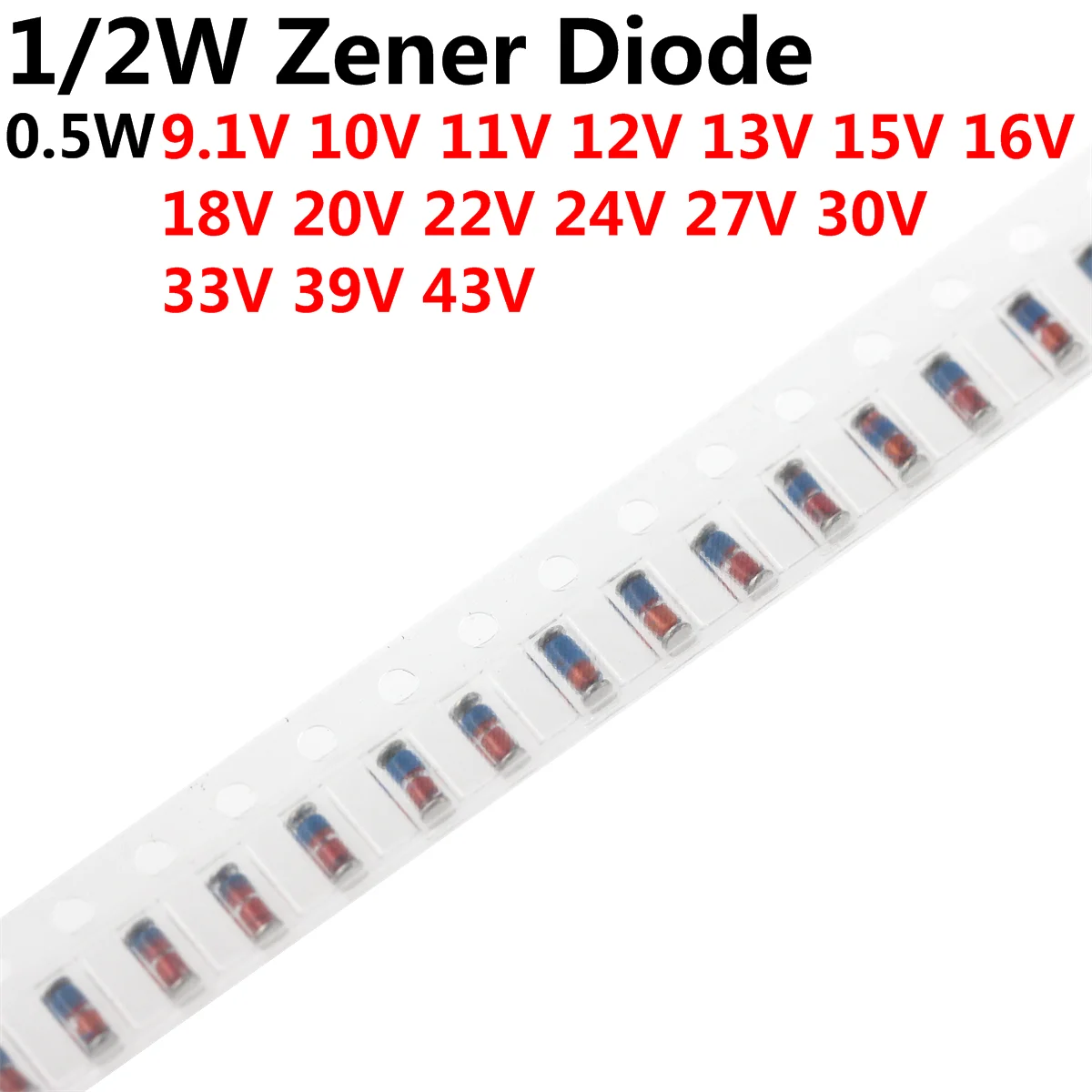 1/2W Zener Diode 0.5W SMD 3V 3.3V 3.6V 4.7V 6.8V 7.5V 9.1V 10V 11V 12V 13V 15V 16V 18V 20V 22V 24V 27V 30V 33V 39V 43V