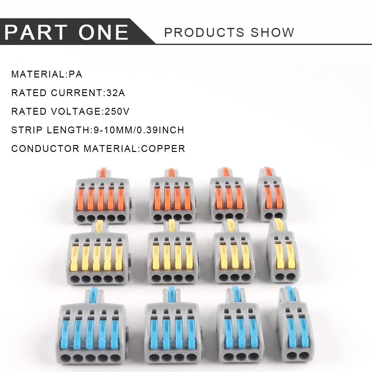 1 Input 2/3/4/5 Output Splitter Quick Spring Splicing Wire Connector Electric Cable Terminal Block Push In With Operation Lever