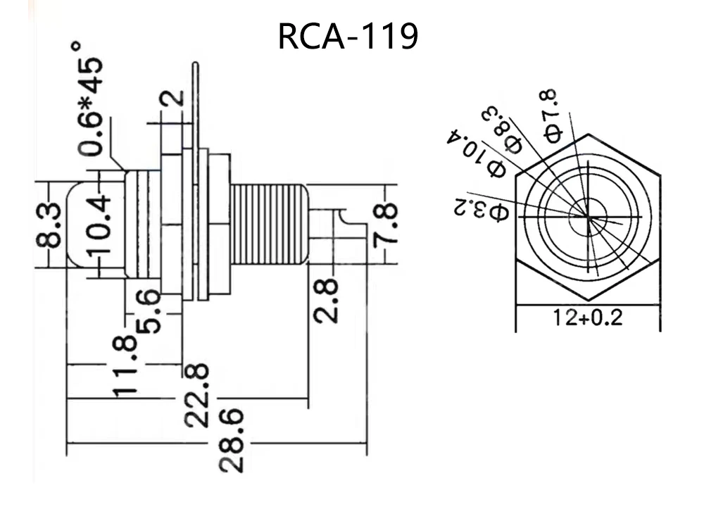 RCA Connector Female Audio/Video Jack Single Hole RCA-119