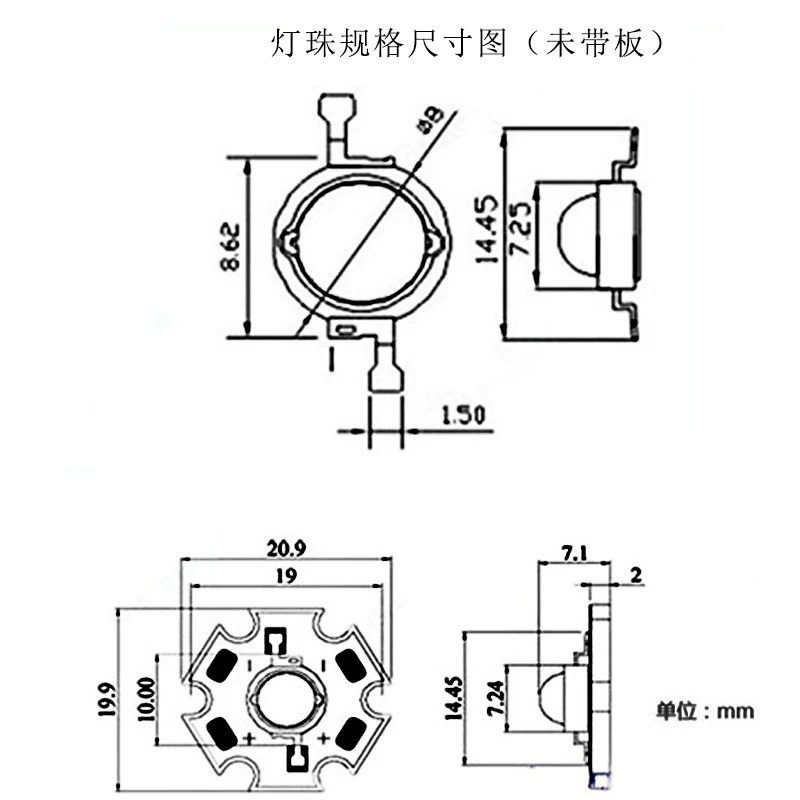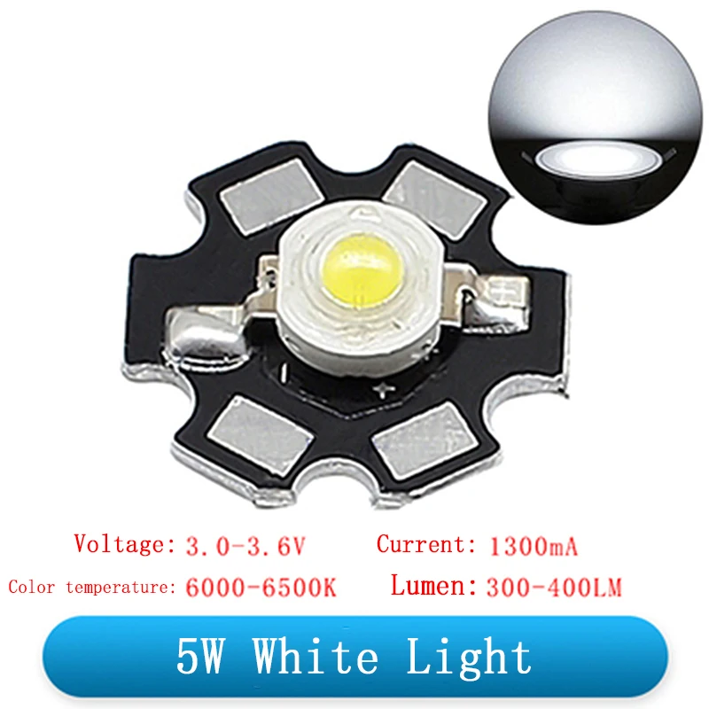 1W 3W 5W High Power LED Beads Full Spectrum Pure White/Warm With 20mm Black Star PCB Heat sink Aluminum Substrate DIY lights