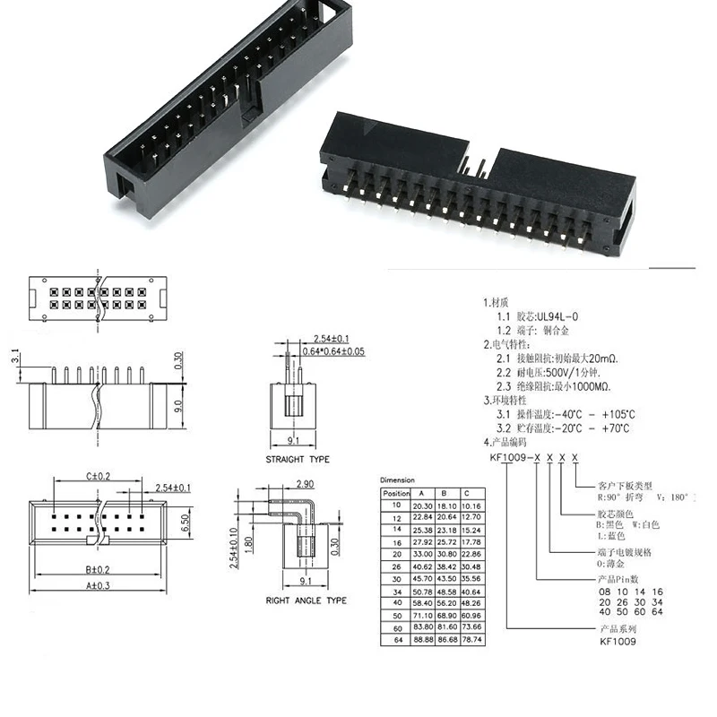 2.54MM pitch dip 6P 10P 20P 26P 34P 40P PIN MALE SOCKET straight idc box headers PCB CONNECTOR DOUBLE ROW DC3 HEADER