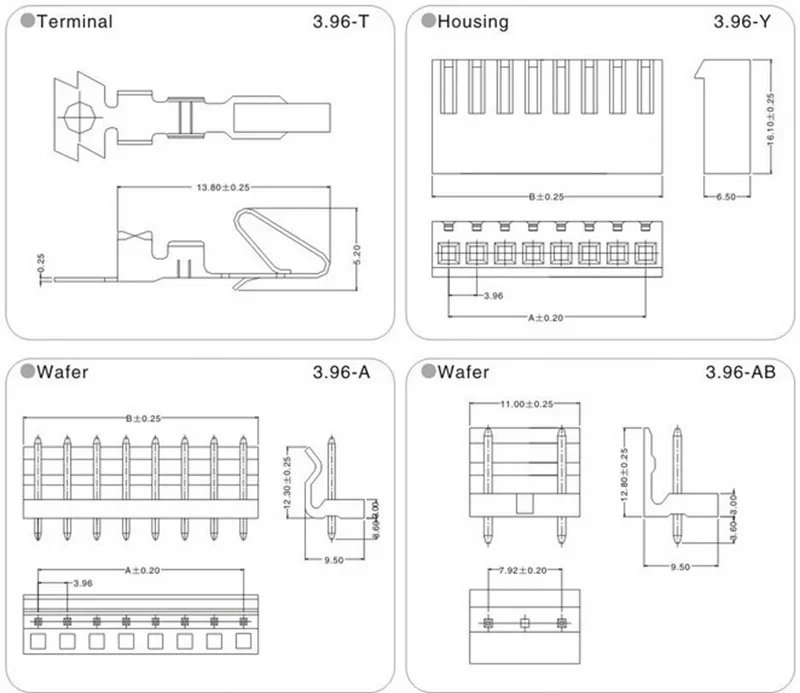3.96mm pitch wire-board Ch3.96 Connector Spacing Plug Housing / Straight Needle / Curved Needle Base / Terminal 3P 3P 4P 5P 6P 7P 8P 9P 10P