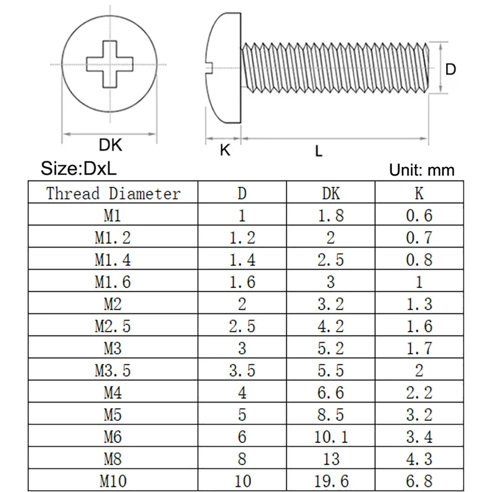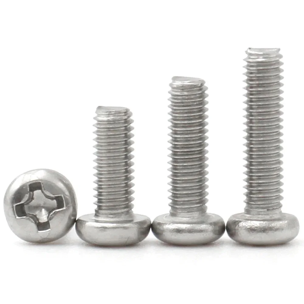 304 Stainless steel M2 M2.5 M3 M3.5 M4 M5 M6 M8 Round Pan Head Phillips Machine Screw Button Head Cap Cross Bolt