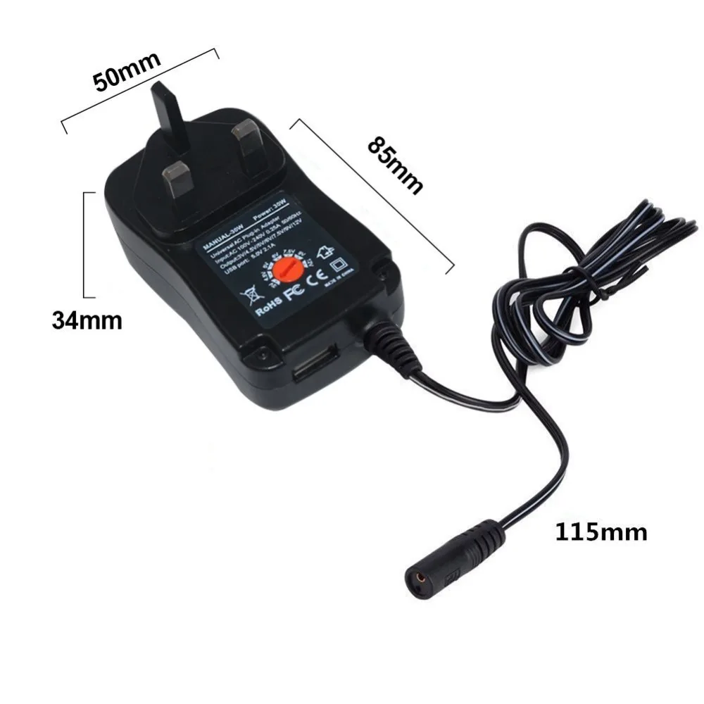 30W Multi Voltage Power Adapter 3v 4.5v 5v 6v 7.5v 9v 12v Power Supply with 6 DC Tips for Tablet PC Mobile Phone with extra USB Port