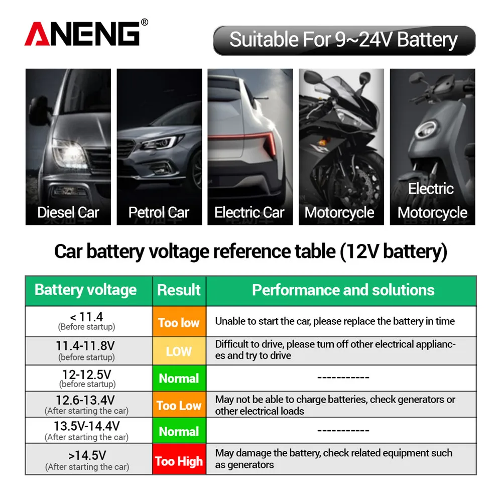 ANENG BT-170 12V Car Motorcycle Tester Fault Detector Battery Tester Digital Alternator Tester Car Diagnostic Tool Auto Repair