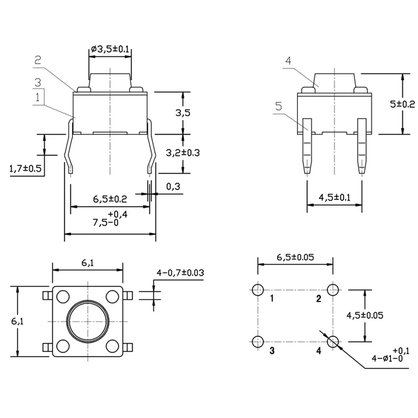 Black 4Pin 6*6*4.3/4.5/5/6/7/8/9/10/11/12/13/14/15/16/17/18/19/20mm Toy Mini Micro Push Button DIP Tactile Switch