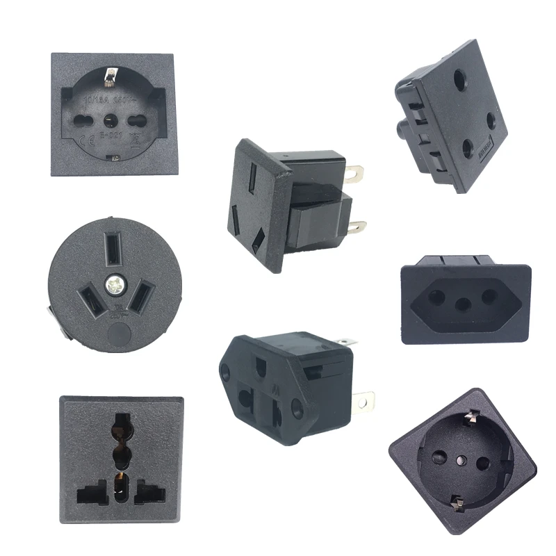Black Copper 10/16A 250V American Japan Australian British EU Germany French Brazil Universal Electrical AC power socket