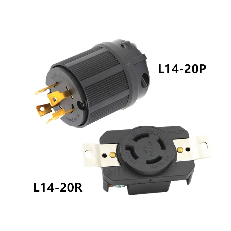 Black UL 20A 250V NEMA L14-20P L14-20R US Locked Receptacle Industry Plug Panel Socket America 4 Pole Wired Connector Plug