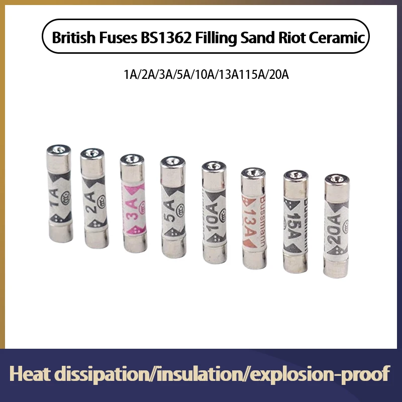 British Fuses BS1362 6*25 Filling Sand Riot Ceramic fuse 6X25MM 1A 2A 3A 5A 10A 13A 15A 20A 250V. Protect your UK electrical installations with our high-quality BS1362 ceramic fuses. These fuses are designed to meet British safety standards and provide reliable overcurrent protection. Available in a range of amperage ratings (1A to 25A), these fuses are ideal for domestic and commercial applications.