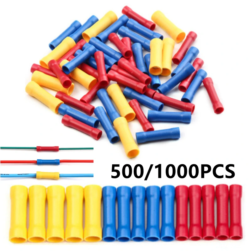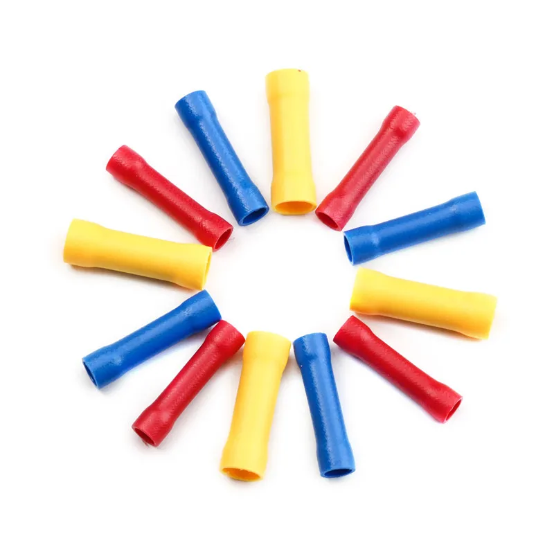 BV Crimp Terminals Butt Splice Connectors Wire Copper Insulated Electrical Straight Wire Terminal BV1.25 BV2.5 BV5.5