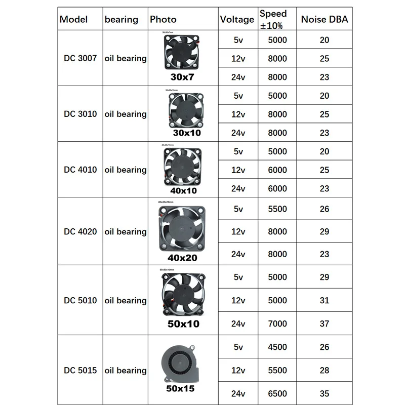DC 5V 12V 24V Cooling Fan Brushless Motor Case Quiet 40MM 50MM 60MM 70MM 80MM 90MM 120MM for 3D print 2PIN For Computer PC Case