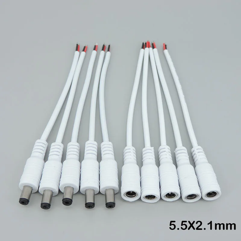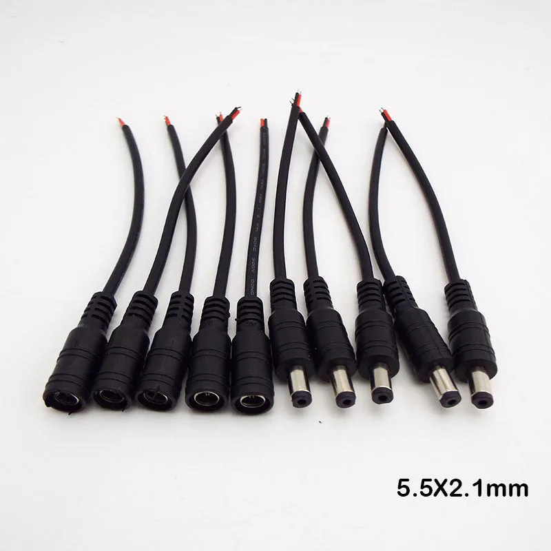 DC Male Female Power supply Plug Cable Wire Jack pigtail cord 22awg Connector for CCTV 3528 5050 LED strip Light 5.5×2.1mm 2/10x. Versatile DC power cable with 5.5×2.1mm male and female connectors, ideal for powering various electronic devices like CCTV cameras, LED strip lights, and other low-voltage equipment. Available in different wire gauges (22AWG) and lengths to suit your specific needs.