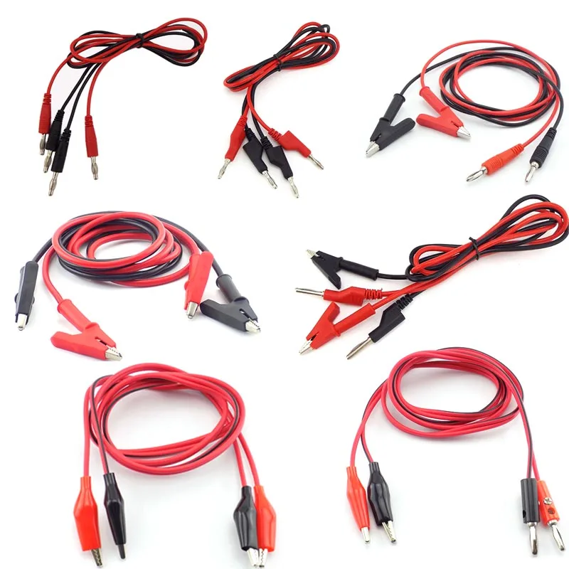 1M double end Test lead Wire Line electrical Voltage Banana Plug Alligator Clip Clamp Crocodile cable diy for multimeter. Versatile test lead cable with banana plug and alligator clip connectors on both ends. Perfect for multimeter testing and other electrical measurements. The 1-meter length provides flexibility and convenience.