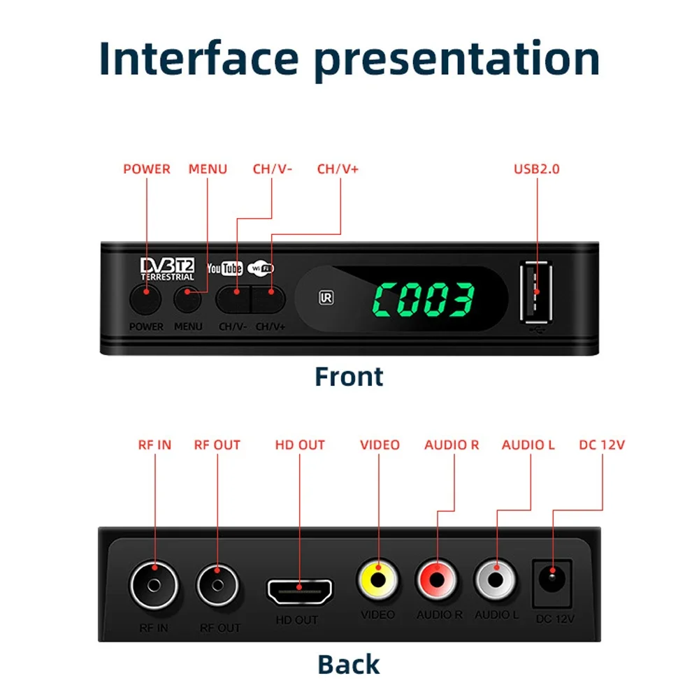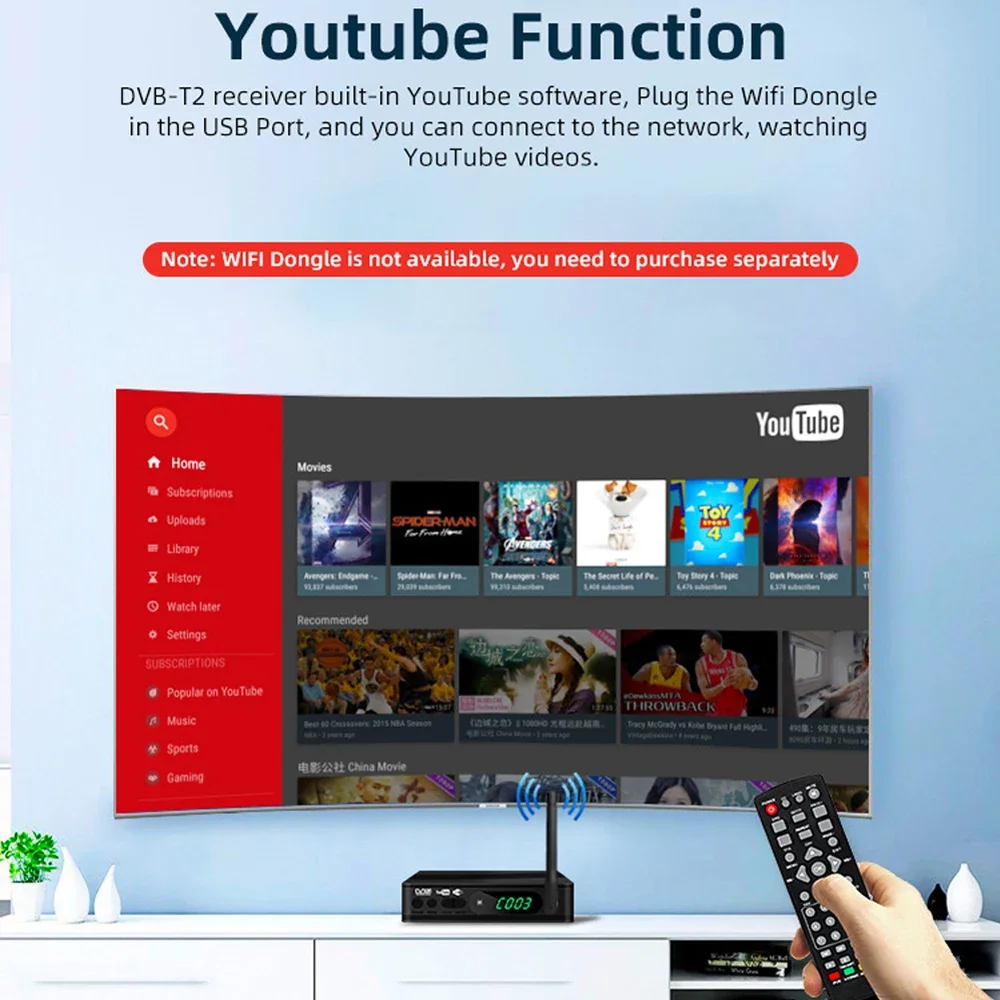 DVB-T2 1080 HD TV Tuner Terrestrial Receiver with Adapter Supports H.264/MPEG4 Decod for Russia/Ukraine/Africa/Indonesia/India