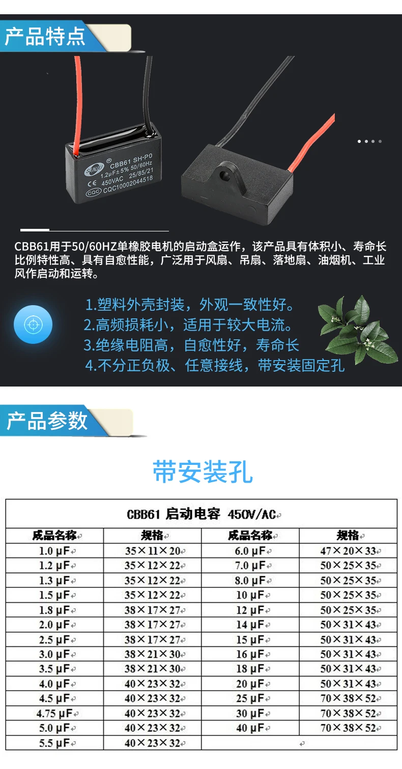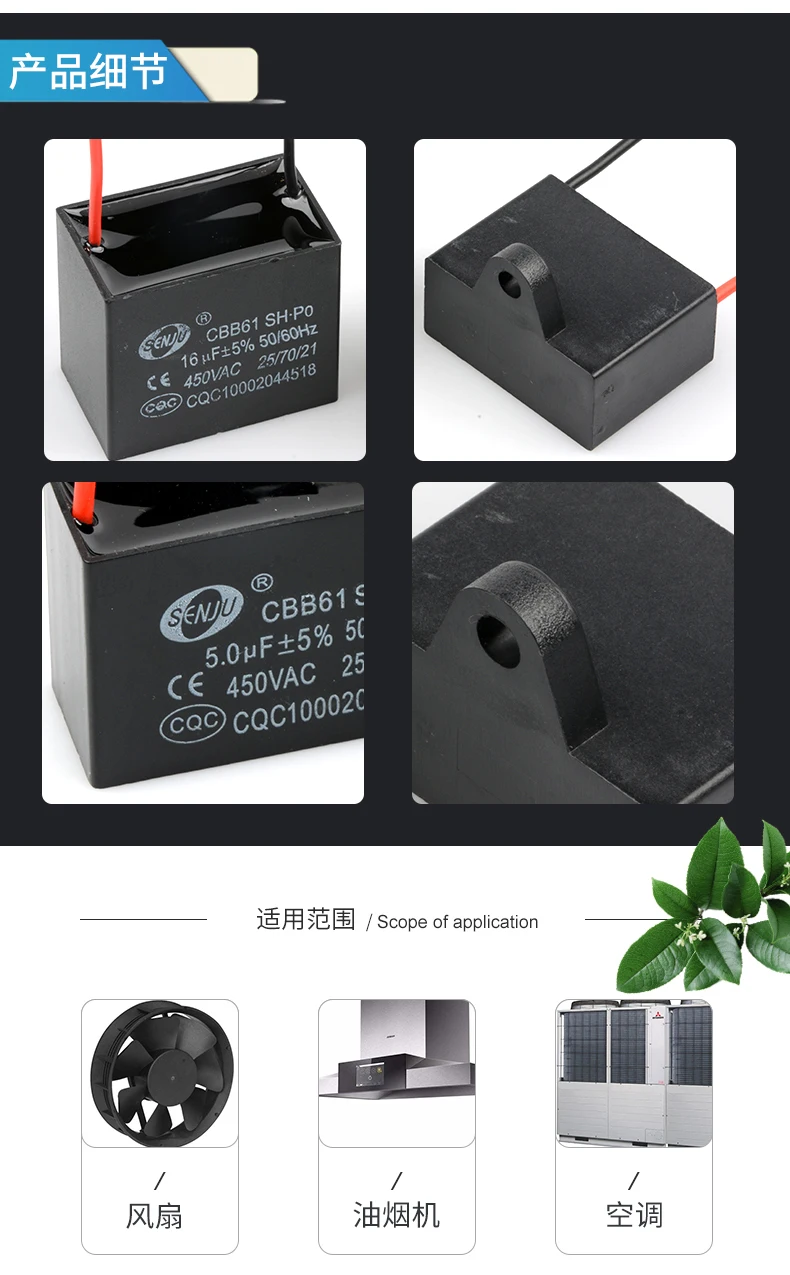 Fan Motor CBB61 Plastic Case High Frequency Start Capacitor