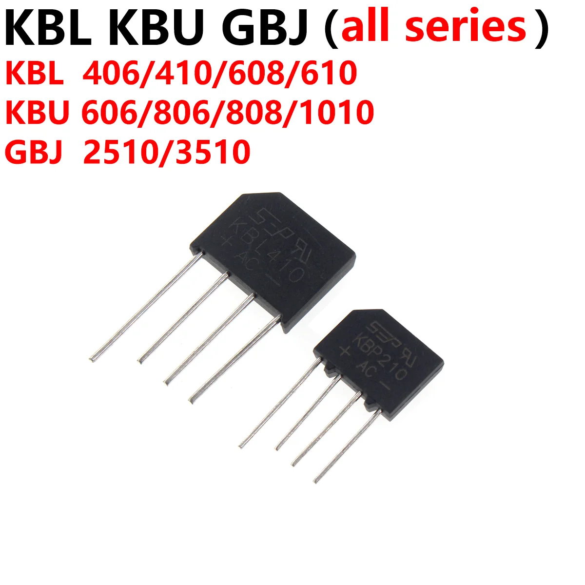 GBJ2510 GBJ3510 KBL406 KBL410 KBL610 KBL608 KBP206 KBP210 KBP310 KBP307 KBU1010 KBU808 808 606 Diode Rectifier bridge