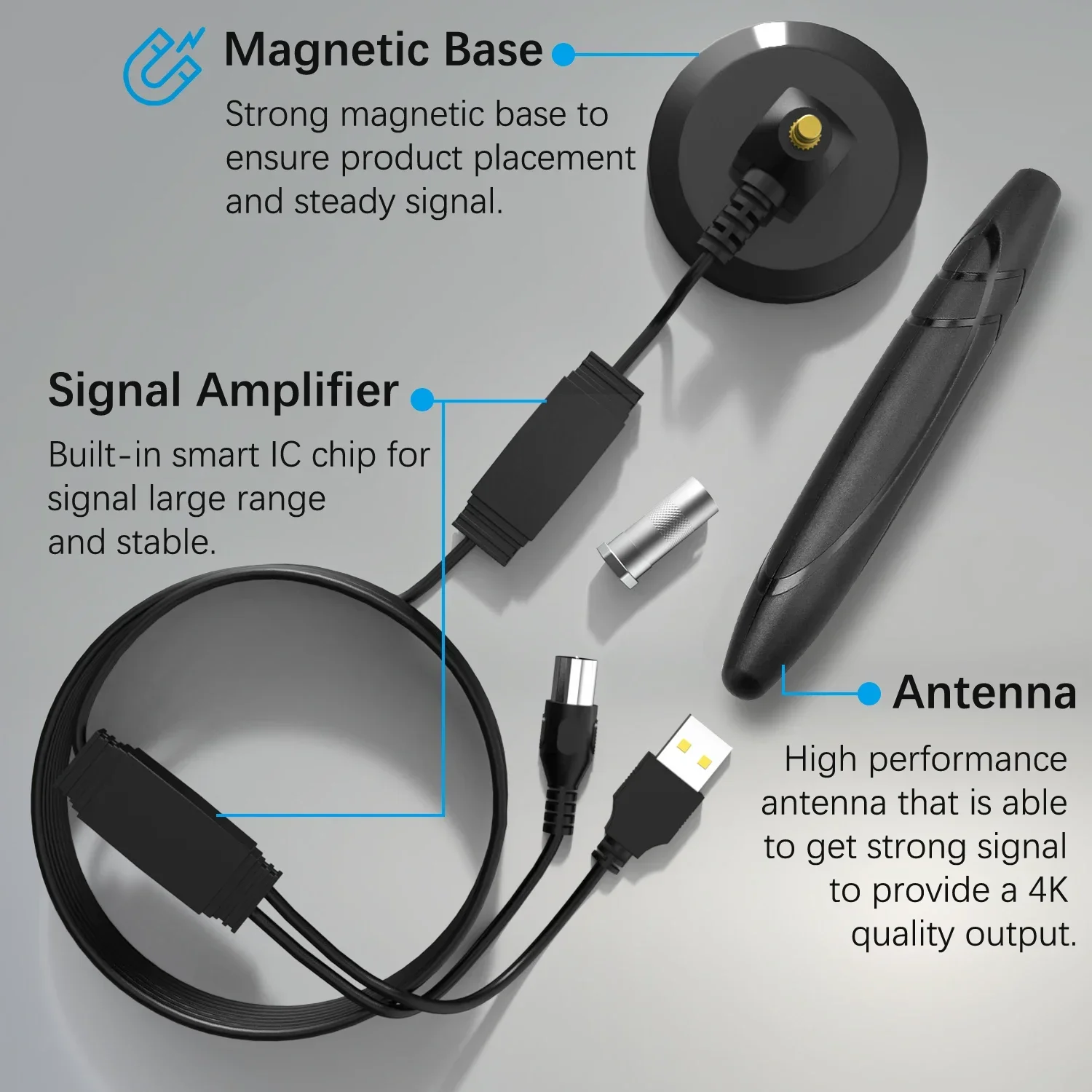 - This magnetic base TV signal amplifier antenna supports plug and play. No need for drive or software.