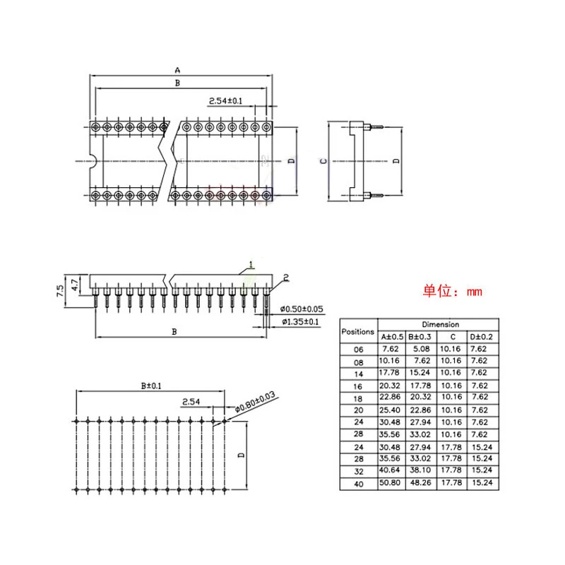 IC Sockets round hole 2.54MM DIP6 DIP8 DIP14 DIP16 DIP18 DIP20 DIP28 DIP40 pins Connector DIP Socket 6 8 14 16 18 20 32pin
