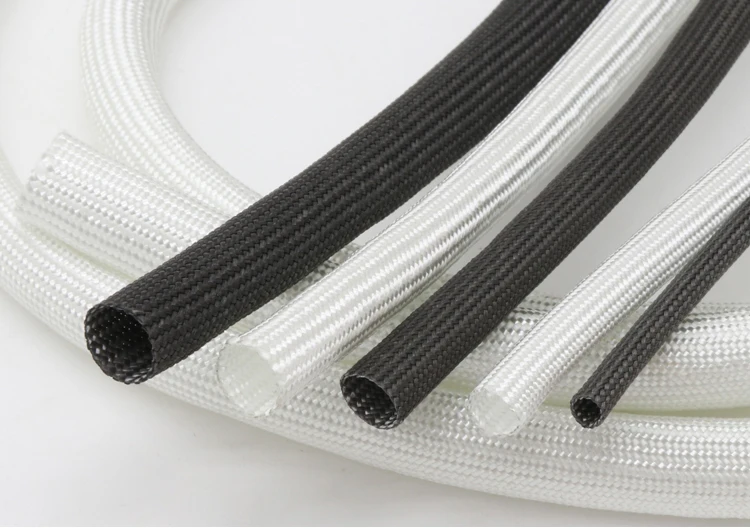 ID 1mm ~ 40 mm Braided Fiberglass Sleeve 600 Deg.C High Temperature Chemical Glass Fiber Tube Fiberglass Sleeving Black White