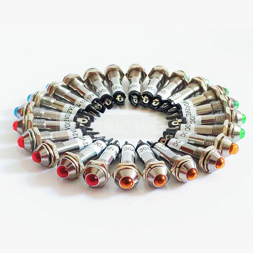 LED 8mm Metal Indicator lights waterproof Signal lamp 12V 24V 220v LED light Signal Convex lamp XD8-2 mini light no wire