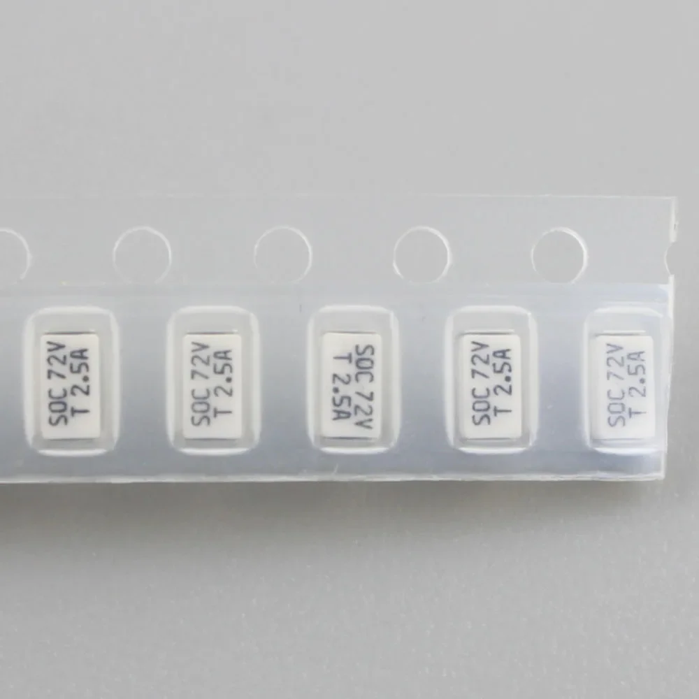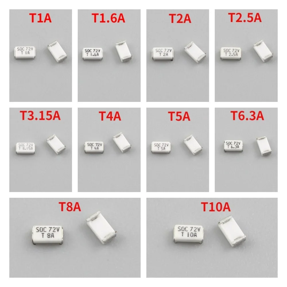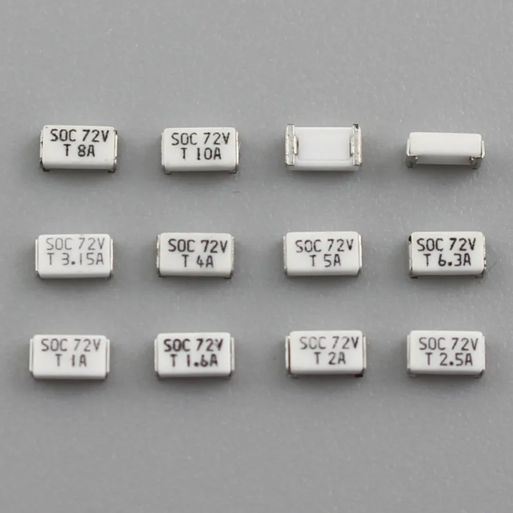 Micro Fuse SOC SMD SMT 1206 72V 11CT T 1A 1.25A 1.6A 2A 2.5A 3.15A 4A 5A 6.3A 8A 10A 72V DC Slow Blow 3216 Surface Mount. Protect your sensitive electronic components with our high-quality Micro SOC SMD fuses. These surface-mount fuses offer reliable overcurrent protection with a slow-blow characteristic. Available in a wide range of amperage ratings (1A to 10A) and a 72V voltage rating, these fuses are ideal for a variety of applications, including consumer electronics, automotive electronics, and industrial controls.