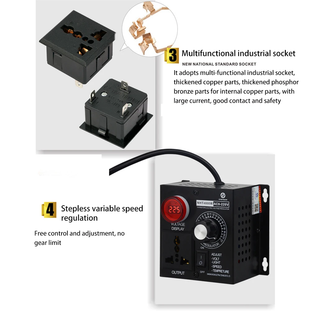 Portable Speed Temperature Light Adjustable Dimmer SCR Voltage Regulator AC 220V 4000W Compact Variable Voltage Controller
