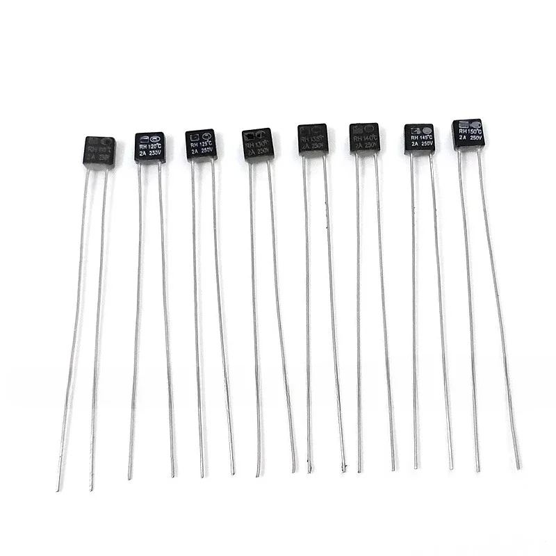 RH 92 95 102 105 115 120 125 130 135 140 145 150 Degree Thermal Fuse RH Temperature Fuse 2A 250V Fan Motor Thermal Fuse. Protect your devices with our reliable RH series thermal fuses. These fuses are designed to automatically cut off power when a preset temperature threshold is reached, preventing damage from overheating. Available in various temperature ratings (92?C to 150?C) and amperage ratings, these fuses are ideal for a wide range of applications, including fans, motors, and electronic equipment.