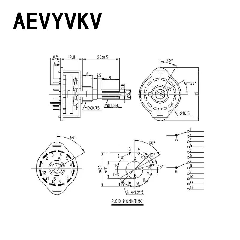 RS25 Band switch Shaft Panel Mount L=20mm 1P11T 2P4T 2P5T 2P6T 3P3T 3P4T 4P3T Rotary Switch Selector Band Pole Position Knob