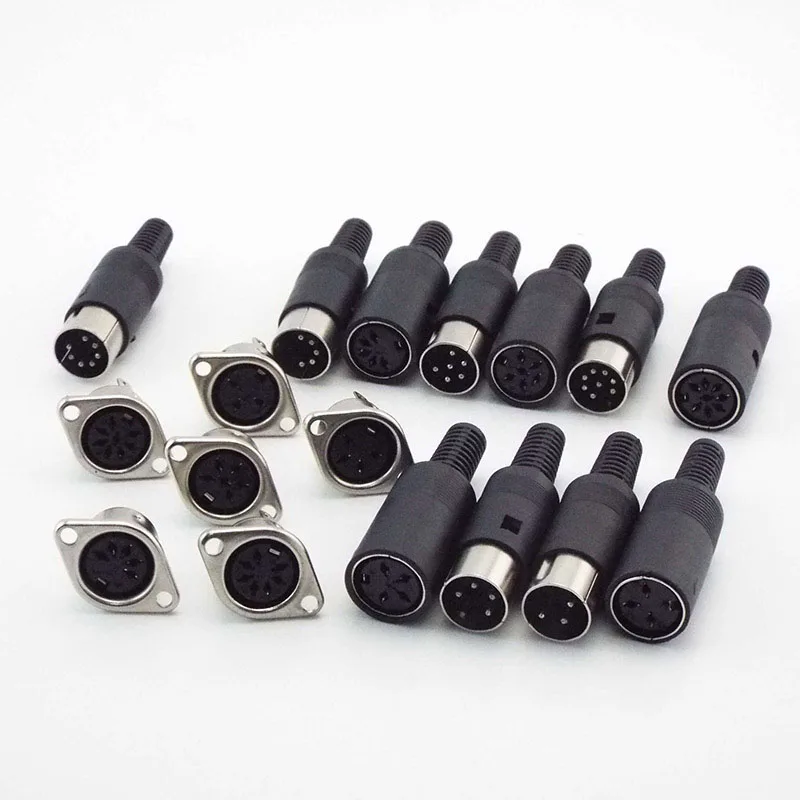 Solder Connector DIN 3 4 5 6 7 8 Pin DIN Male Female Plug with Plastic Handle + Female Socket Hulled Panel Mount Chassis P1