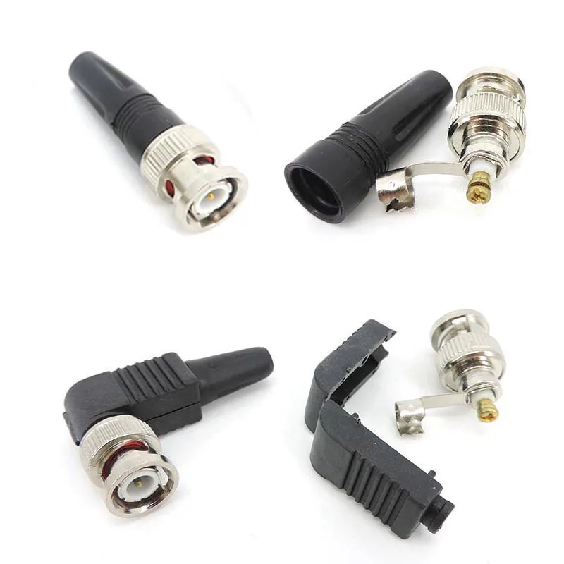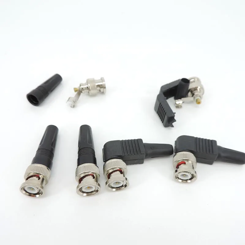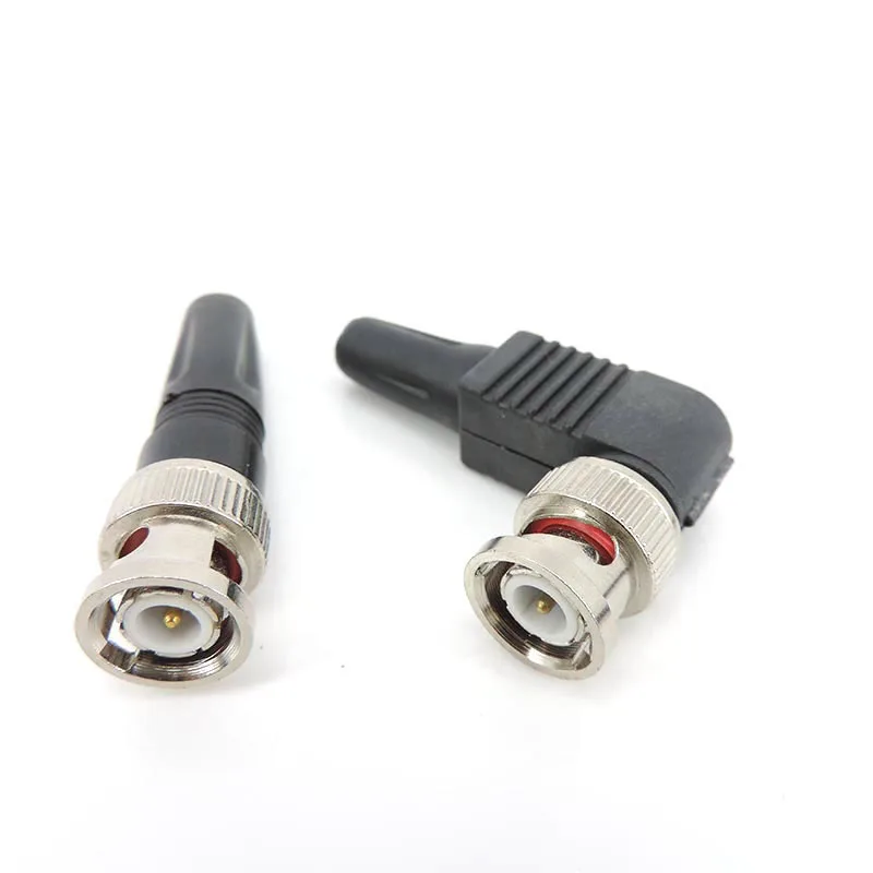 Straight Bnc Male plug Connector right angle 90 degree adapter For Rg59 solderless Cable CCTV video balun no solder