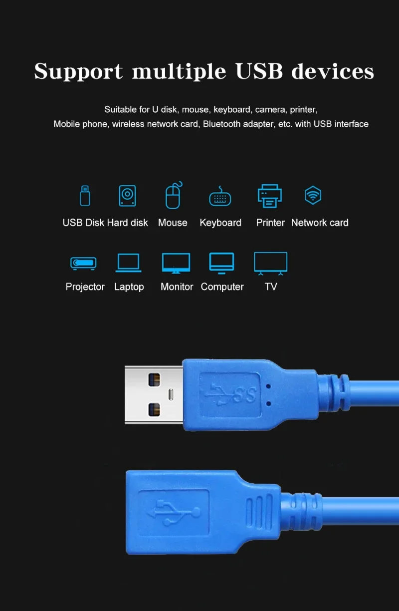 USB 3.0 A Male AM to USB 3.0 A Female AF USB3.0 Extension Cable 0.5m 1m 1.5m 3m 5m. Extend your USB 3.0 connections with this high-speed extension cable. It’s perfect for connecting devices like external hard drives, printers, and scanners. The cable supports SuperSpeed data transfer rates, ensuring fast and efficient data transfer.